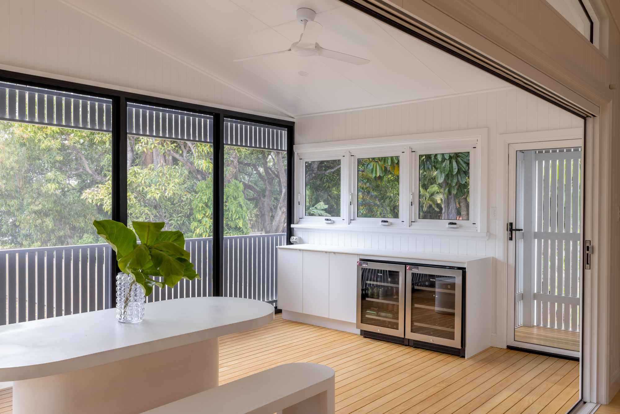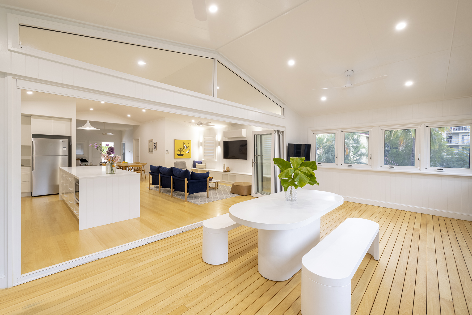 Affectionately known as the ‘White House’, this masterfully renovated Queenslander at 23 Morehead Street is a standout in the sought after suburb of South Townsville. Reimagined by award winning builder Catobuilt, in collaboration with Ethos Interiors, the home blends timeless charm with a contemporary edge. Oak floors, custom joinery, and modern furnishings set a refined foundation, while creative detailing and unique finishes honour the home’s traditional character in a fresh, modern way. The spectacular project was recognised at the 2022 Queensland Master Builders Awards taking out the prestigious Presidents Award and Best Renovation and Extension ($675k-$1million) for North Queensland.