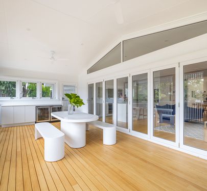 From the street, the home presents as a classic Queenslander, complete with traditional front stairs and a welcoming traditional veranda. Step inside and you’re greeted by a vast, open-plan living, dining, and family space designed for effortless North Queensland living. The layout flows seamlessly to the kitchen and out to a covered rear deck - a true indoor-outdoor haven for entertaining. There are three generous bedrooms plus a sunroom that doubles as a fourth bedroom, and two beautifully appointed bathrooms including a luxurious ensuite. The master suite is a true parents retreat, offering privacy, space, and a walk-in robe complete with the original front doors.